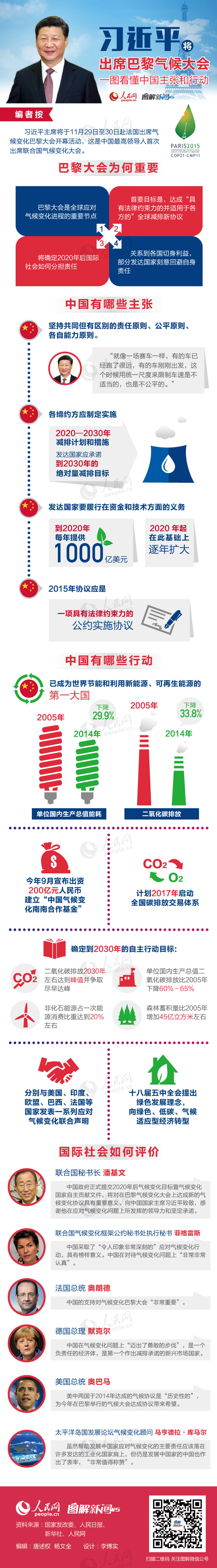 原标题:习近平将出席巴黎气候大会 一图看懂中国主张和行动