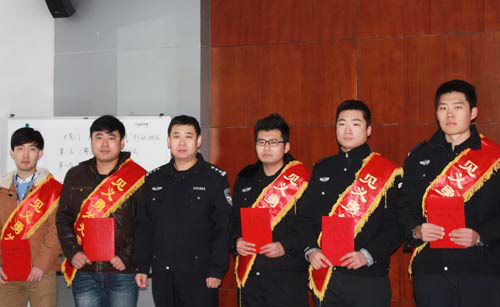 天津北方网讯:公安河西分局大营门派出所召开见义勇为人员座谈会。会上向协助公安机关抓获盗窃电动车犯罪嫌疑人的巡防队员商震、王小川,以及在九江路与苏州道交口处抓获扒窃犯罪嫌疑人的文职人员李佳飞、刘强颁发《见义勇为证书》及奖金,对他们的勇敢行为给予充分肯定。获奖同志一致表示,将更加认真履职,及时发现可疑情况,积极协助公安机关,为维护辖区平安做出更大贡献。