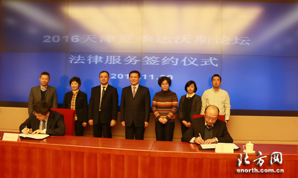 天津北方网讯:11月30日,“2016天津夏季达沃斯论坛筹备协调委员会法律服务签约仪式”在天津市政府举行,天津夏季达沃斯筹备办公室与天津四方君汇律师事务所共同签署了《法律服务方案暨合同》。