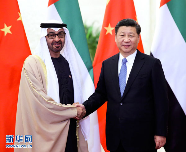 穆罕默德表示,中国是伟大国家,在国际上发挥着重要影响。阿联酋致力于深化同中国战略伙伴关系,加大对华投资,加强在基础设施建设、可再生能源、航空和科技等领域合作,积极支持和参与“一带一路”建设,也愿在亚洲基础设施投资银行建设中发挥积极作用,探讨同中方开展对非洲三方合作。阿联酋愿密切同中国安全合作,加强在国际和中东地区事务中沟通协调。