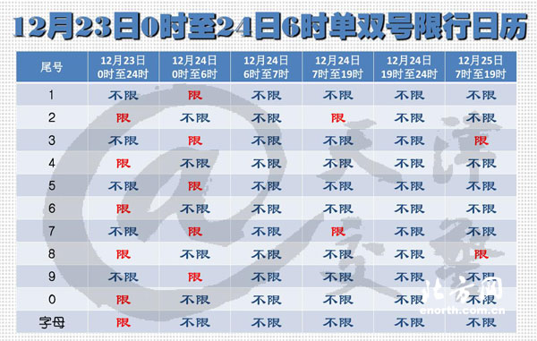 天津交警:23日全天限行,而24日则只有0时至6时为单双号限行时段。24日7时至晚19时恢复尾号限行措施,即限行尾号2和7。