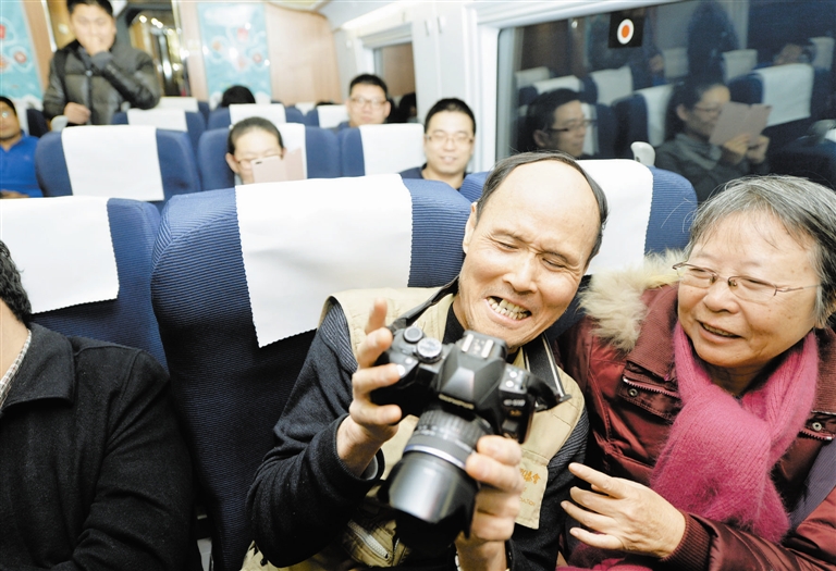 列车平稳开行,时速不断提升,车上的人们纷纷拍照留念。记者发现,一位老人正拿着首趟津保铁路列车的车票照相,他叫张心田,今年80岁了,今天特意赶来乘坐津保铁路的首趟列车。“我家在保定,在天津40多年了,以前回家都要绕道北京,津保铁路拉近了我的故乡保定和第二故乡天津(的距离)。”老人激动地说。