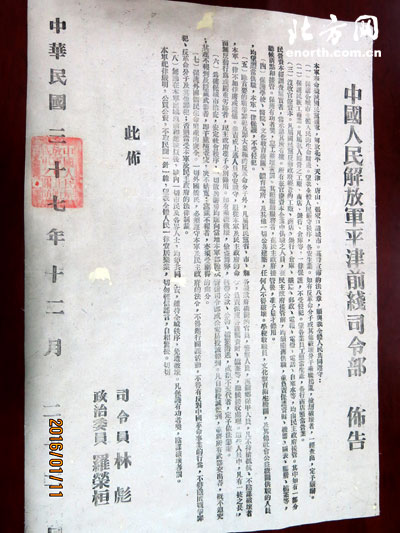 天津北方网讯:今年是天津解放67周年,天津市档案馆公开展示了一组珍贵档案史料,还原了解放天津这一重要的历史性时刻,展示了天津解放战役的壮丽场景。