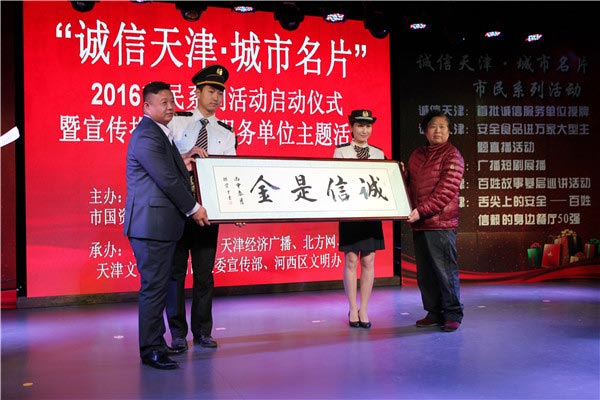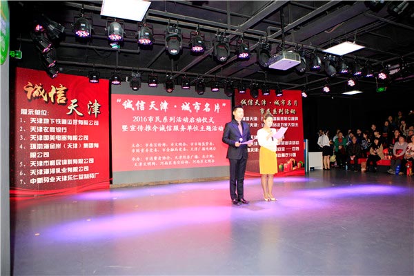 天津北方网讯:3月15日,由天津市委宣传部、市文明办、市市场监管委、市国资委党委、市金融局党委、天津广播电视台联合主办,市消费者协会、天津经济广播、河西区委宣传部、河西区文明办等单位承办的2016“诚信天津·城市名片”市民系列活动启动仪式在河西文化中心举行。