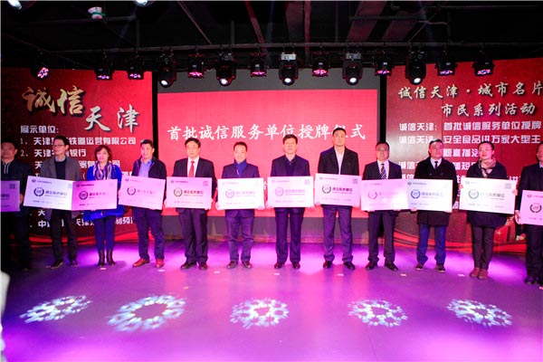 在启动仪式上,天津农商银行、地铁运营有限公司代表诚信服务单位,国美电器有限公司、环渤海金岸集团代表诚信经营单位,利民调料有限公司、海河乳业集团公司、乐仁堂制药厂代表诚信生产单位进行现场展示,做出为民服务诚信承诺。全国诚实守信道德模范孙世福宣读诚信宣言。市消费者协会为首批诚信服务单位授牌。