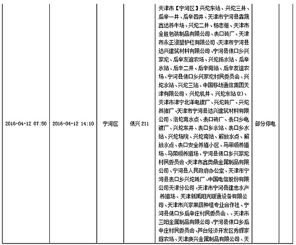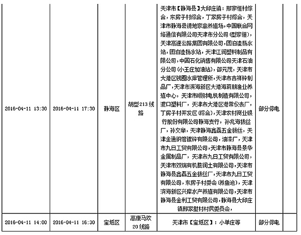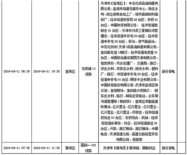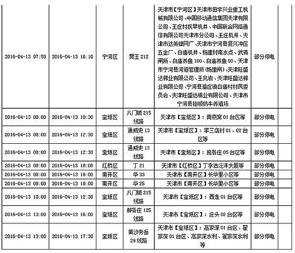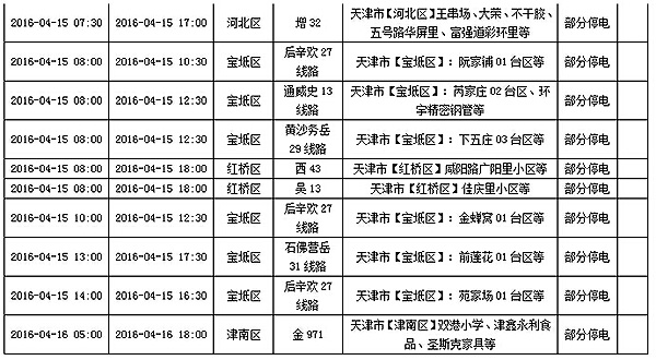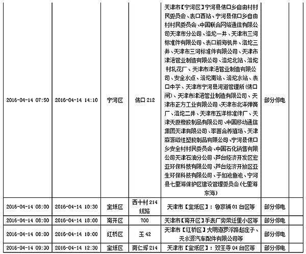 欲获取更详细停电信息,请登录网站WWW.TJ95598.COM或致电电力服务热线95598咨询。