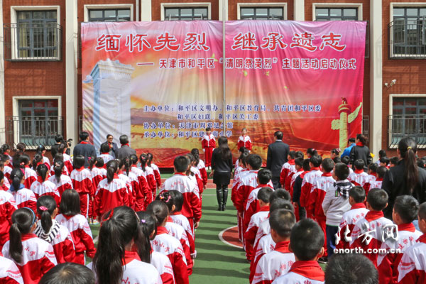 天津北方网讯:4月1日,由和平区文明办、区教育局、团区委、区妇联、区关工委主办的“缅怀先烈继承遗志”——和平区“清明祭英烈”主题活动启动仪式在建物街小学举行,约400名学生参加。