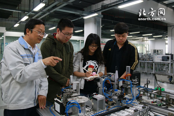 说起刘玉亮自己,他也是从天津走出来的“技能大师”。1989年从天津大学研究生毕业后,他曾经在研究所、高校从事多年自动化、软件设计工作。2012年,刘玉亮技能大师工作室在实训中心正式成立,面向企业、职工、学校教师开展PLC、机电一体化、运动控制、机器人、传感器等方向的高级技能人才培训、研修、攻关、交流等活动,推广技术技能革新成果。“工作室的主要任务是培养高技能人才。”刘玉亮说,“中国要实现‘工业4.0’就需要大量的技能型人才,这些人才必然要经历动手实践的反复学习。我们希望这样实操能力强的人才越来越多,更强有力地支撑中国经济社会的不断向前发展。”