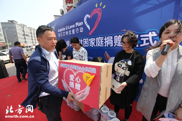 天津北方网讯:5月8日,时值母亲节,一场名为“情系西青佳贝幸福”的优爱行动在西青区杨柳青举行,32户天津西青贫困家庭获赠奶粉和爱心大礼包。