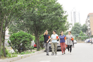 2003年小区的住户越来越多,居民温兆丽和包秀君老姐俩成为了好朋友,并在居委会的号召下成为社区护绿巡逻小分队的一份子。每周固定一天参加巡逻活动,捡拾垃圾、补种绿地、铺平道路、治理自来水跑冒、为困难老人送医送饭,各种互帮互助的小事儿、好事儿逐渐成为他们巡逻队的标签。温兆丽告诉记者:“以前我们在平房住的时候没有自来水,一水多用很常见。现在用上了自来水,好多人也就让水自然流了。我觉得生活好了更不能浪费。低碳生活要从生活中的一点一滴做起,要从身边小事做起,不仅是为了省钱,也为将来子孙后代节省了宝贵的能源。”像这样的环保巡逻队员,整个社区有60多名,组成了5支固定巡逻队。周一到周五,队员们每天雷打不动按时出勤,维护社区环境。“每天早上,我都会带着铲子、水壶,在小区里晃一圈,哪里的树苗被拔的,马上补种,如果小树周围的土地非常干,我都会早晚浇水。”像高师傅一样,每天“查勤”是护绿队员们的一项必修课。“我以前不懂养树知识,现在我拜托孙女上网帮我查有关资料,小树苗出现虫害,我还特地到花鸟市场去请教如何处理这个情况。”志愿者郭阿姨告诉记者,现在经过大家的精心护理,小树苗正茁壮的成长着。对于这些护绿志愿者来说,这些树苗已俨然成为他们的宝贝。看到毁绿现象,他们都会极力制止,提醒所有居民爱护绿化。每年的5月15日-5月21日为社区环保科普活动周,社区都会开展各种形式的环保宣传咨询活动,并专门开设了环境教育宣传橱窗,增强了环境保护的知识,强化了环保意识。
