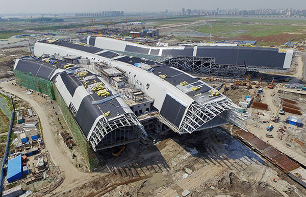 天津北方网讯:位于滨海新区中新天津生态城的国家海洋博物馆建设如火如荼。记者在建设工地看到,国家海洋博物馆展馆正在加紧穿“外衣”,外立面幕墙安装积极推进,“鱼跃”造型更加明晰。