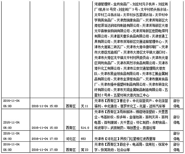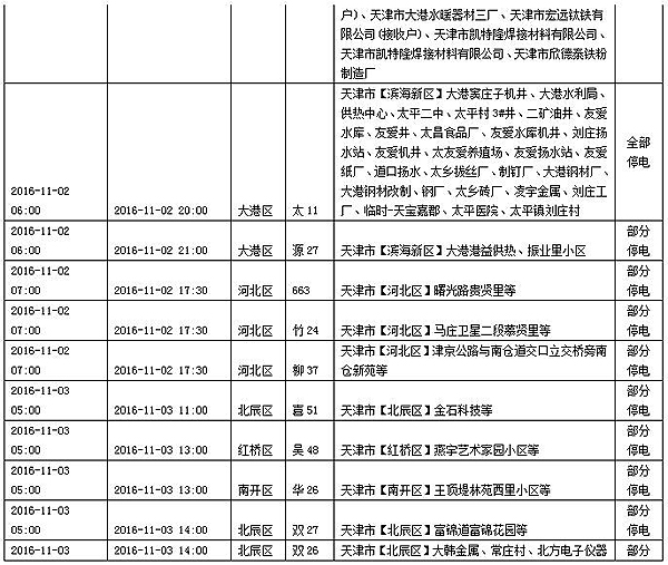 2016年11月5日、6日无计划停电信息。
