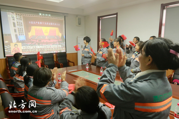 和平区环境卫生管理保洁一队外来务工人员观看十九大开幕会