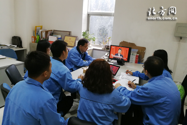 津南区工业经济委员会党员干部职工收看开幕会直播