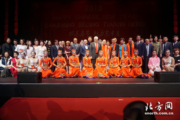 作为活动版块之一,“欢乐春节•魅力京津冀”综艺晚会于当地时间2月10日、11日在洛杉矶 比利佛山塞班剧场连演两场。这台演出汇集了京津冀三地特色文化资源,包括由北京市带来的昆曲、舞蹈、太极表演,天津市带来的民乐表演,河北省带来的杂技表 演。其中,太极表演《山居吟》和舞蹈《丝路唐风》格外引人注目,这两个节目曾在2017年“一带一路”国际合作高峰论坛故宫御花园文化展演活动中亮相。我 市带来的民乐节目《永恒的胜利》《喜洋洋》以生动的表演、完美的表现及鲜明的地域特色,给现场观众留下深刻印象。演出在当地引发强烈反响,来自美国洛杉矶 的市民凯蒂说:“2018年春节来自京津冀的艺术家们将中国的传统文化艺术带给美国民众,通过这次活动让他们对中国的传统文化有了更多了解,同时也让人们 感受中国春节节日的快乐。”为促进中美旅游业共同发展,实现互利共赢,此次活动还组织了天津旅游专场推介会,为两地旅游合作提供了更为广阔的发展空间。