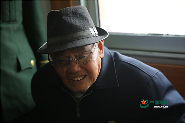 在聆听完老人的战斗事迹后,官兵们为老人播放最近超燃的宣传片《厉害了,我的军》。