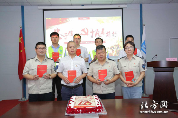 中建三局(北京)天津经理部党委书记李伟铭为大家带来了联建支部的第一堂党课。全体党员都收到了一份“特殊礼物”,大家一同追忆难忘的入党故事,度过了一个别样的政治生日。