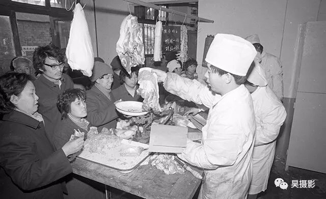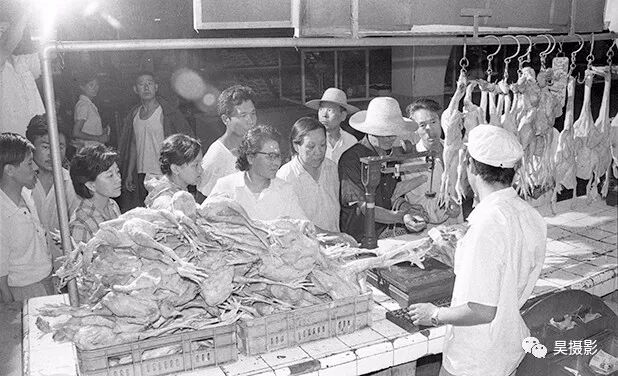 1985年11月,顾客排队购买瘦肉型分割肉。 陈则云 摄