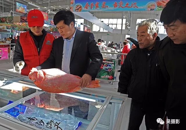 2013年12月,海南优质农产品批发市场在本市开业,该市场不仅面对集团批发,还以超市的形式低价向市民零售,从常见的椰 子、青釉到只有南海出产的马友鱼、马鲛鱼高档海产品,丰富了本市市民的菜篮子,两节餐桌也多了往年不曾有过的佳肴。图为市民选购高档海鲜大红鱼。王涛 摄