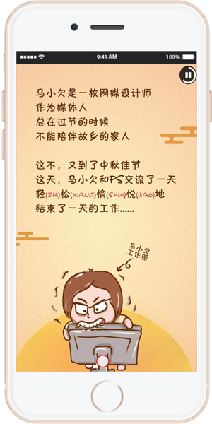 内容提要:马小欠是一枚网媒设计师,作为媒体人,总在国际的时候,不能陪伴故乡的家人。这不,又到了中秋佳节,这天,马小欠和PS交流了一天轻(zhi)松(xiang)愉(shui)悦(jiao)地结束了一天的工作……