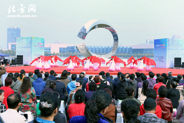 天津北方网讯:10月14日上午,天津市文化中心美术馆前广场,伴随着欢快的乐曲,500余名广场舞队员们精神抖擞,翩翩起舞,迈开矫健的步伐,用优美的舞姿传达出新时代天津人的获得感和幸福感,通过丰富多彩、散发着无穷活力的广场舞蹈形式为庆祝改革开放40周年营造出浓郁的文化氛围。