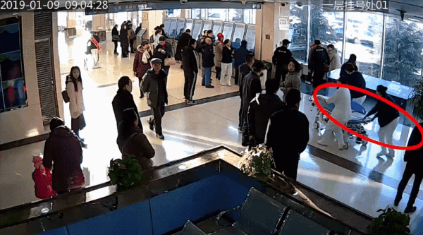 1月9日,李女士(化名)来到泰心医院门诊大厅,从监控视频显示的时间看,9:03:09她身体突然出现不适,家属见状立即扶着李女士坐到窗边,仅仅30秒后,李女士晕了过去,家属见状立即呼救。9:03:44,正在大厅导诊台工作的门诊护士赵连惠听到呼救,迅速跑到李女士身边,赵连慧一边呼喊离她不远的同事,一边对李女士说话。9:04:29,听到呼喊声,3位同事及2名保安推着一辆平车迅速赶到李女士身边。9:04:50,医护人员协助李女士躺上平车,赵连慧一边推着平车向急诊室跑去,一边大声和李女士说话。9:05:33,平车到达急诊抢救室。从李女士病发到被推进抢救室,仅用了43秒,医护人员上演了一场“百米冲刺”!