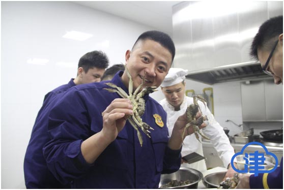 (消防员从老家青岛带来的海鲜美食,给消防队的年夜饭添了到菜)