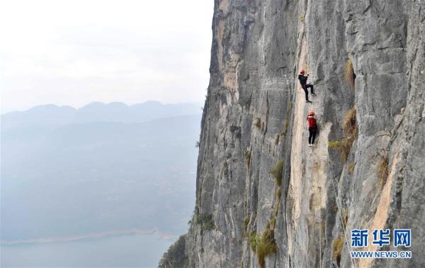 2月6日,游客在湖北省建始县花坪镇一处攀岩户外运动基地攀岩。春节期间,湖北省恩施土家族苗族自治州建始县花坪镇一处攀岩户外运动基地迎来众多游人。人们在陡峭的岩壁上体验惊险刺激的攀岩运动,挑战自我,享受不一样的愉快假期。新华社发(杨顺丕摄)
