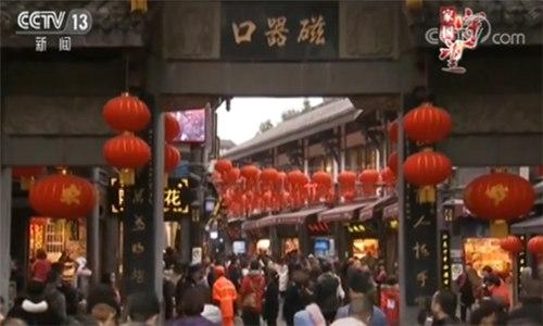 团圆是幸福,而坚守是一种责任。在您和家人团聚的时候,有人依然坚守在自己的工作岗位上。您现在看到的是重庆磁器口古镇,已有1800年的磁器口素有巴渝第一古镇之称,保存了较为完整的古朴粗犷的古建筑,蕴含丰富的巴渝文化。“一条石板路,千年磁器口”是重庆的缩影和象征,被赞誉为“小重庆”。