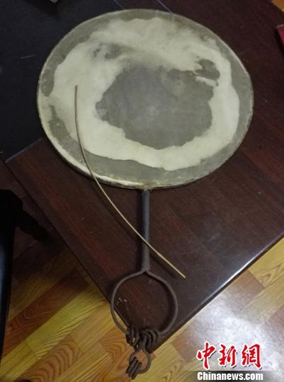 图为端鼓腔表演伴奏乐器羊皮鼓。苏本善摄