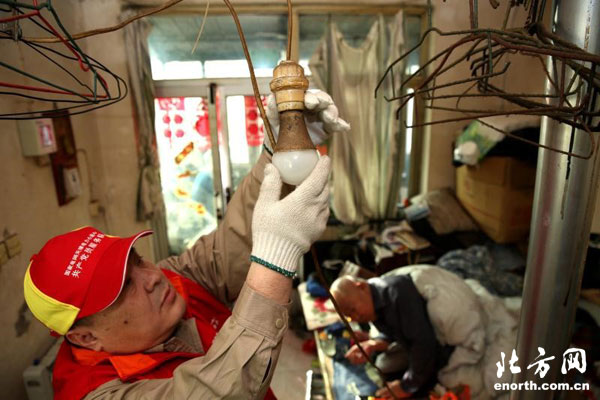 但郭向河却没有马上离开,他见到老人家中境况,决定帮老人做些什么。也就是从这一天开始,国网天津静海供电有限公司的电力职工郭向河就和老人结下了不解之缘。在以后的近三十年时间里,郭向河隔三差五就会到老人家中,看到老人冬天无法取暖,就给老人装上了暖气,看到老人夏天太热,就为老人装上了空调,看到老人行动不便,就为老人买来了电摩托。