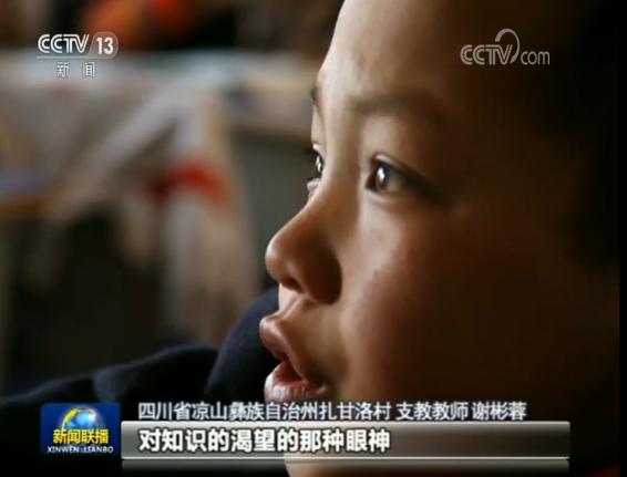 四川省凉山彝族自治州扎甘洛村 支教教师 谢彬蓉:当时就有个小男孩叫默格的,我们在上课的时候,他经常在我们教室那趴着,那个眼睛是瞪到大的,嘴巴也跟着呀呀张着嘴读,孩子们对我那种期盼的眼神,对知识的渴望的那种眼神触动了我。