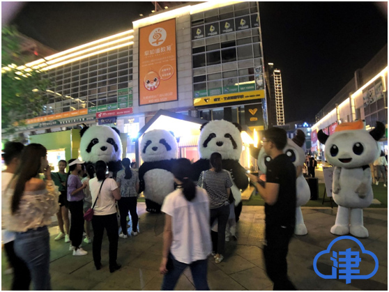 大熊猫巡游是奥城夜市在国庆假日里又一个受欢迎的主题活动。憨态可掬的大熊猫在夜市的街区里来回穿梭,它们热情友好地回应每一位游客、市民的拍照请求。大人、孩子在这里都变成了孩子,有国宝相伴的夜晚,幸福就在眼前。
