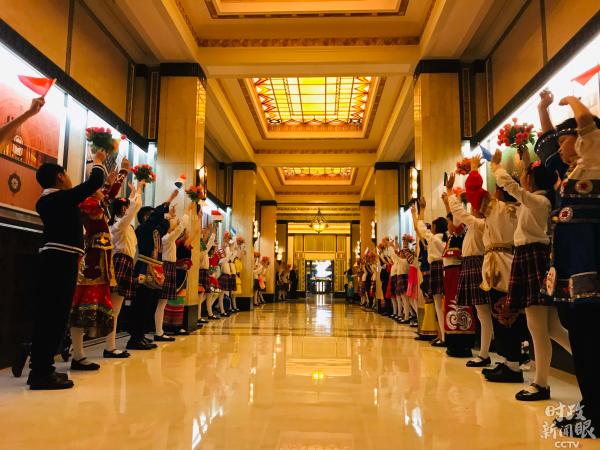 △11月4日晚,欢迎各国贵宾的小朋友们。(央视记者魏子钧拍摄)