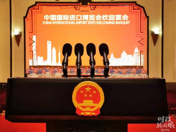 △11月4日晚,习近平主席在欢迎宴会上致辞时说,进博会“迎的是五洲客,计的是天下利”。(央视记者马亚阳拍摄)