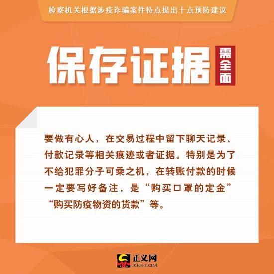 内容提要:购买物资需谨慎、见到“特效药物”需警惕、保存证据需全面、受骗处置需果断……防疫的同时也要防诈骗!检察机关根据涉疫诈骗案件特点提出10点防骗建议,手把手教你怎样防止被骗,如不慎被骗该怎样处理,干货满满。
