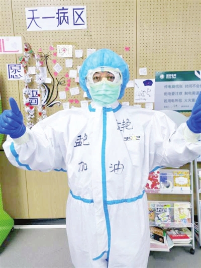 作为一名小组长,积极协助医生救治病人是首要工作,保护好组员的身体健康、避免被感染也是我的一项重要工作。为了确保组员安全,在每个人穿上防护服准备进舱前,我都要仔细检查一遍,确保没有任何风险后才让组员进入病区。在舱内,我合理分配组员的工作,使护理工作井然有序、忙而不乱。我时刻留意着队员的防护问题,一旦有队员出现身体不适,我就立即帮助他们进行紧急处理。在方舱医院,大家都穿着密不透风的防护服,戴上两层防护口罩,刚开始有很强的憋闷感,我就鼓励大家积极调整呼吸,让大家逐渐适应了这种感觉,全身心投入到救助工作中。