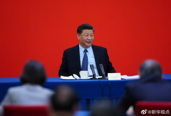 23日上午,中共中央总书记、国家主席、中央军委主席习近平看望了参加全国政协十三届三次会议的经济界联组委员,并参加联组会,听取意见和建议。