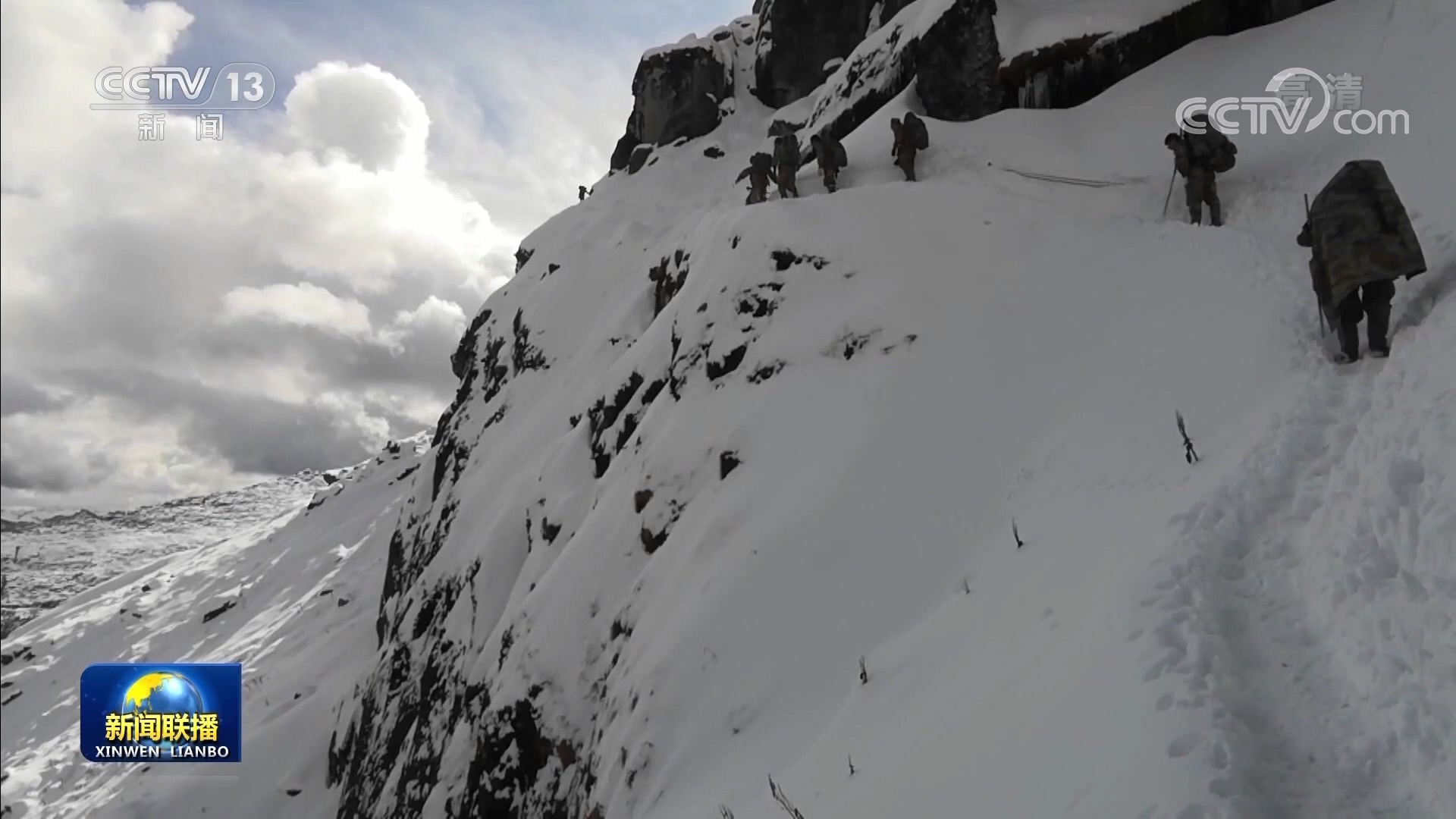 随着海拔的升高,官兵们来到了巡逻路上最危险的雪山虎口崖路段。