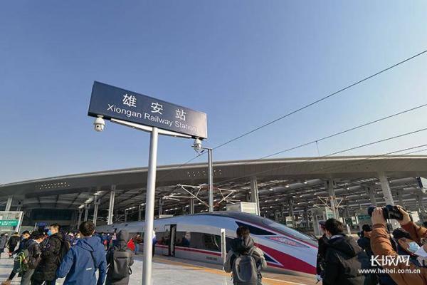 京雄城际铁路北京西开往雄安首发列车进站。长城网记者 马宁 摄