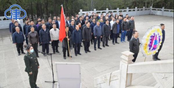 专题学习的最后一天,在党旗的引导下,戴永康带领读书班全体成员组成3路纵队,徒步前往盘山烈士陵园,开展“重温党史,缅怀先烈”祭扫活动,在革命烈士纪念碑,学员们瞻仰默哀、敬献花圈、重温入党誓词。(津云新闻见习记者苑美丽)