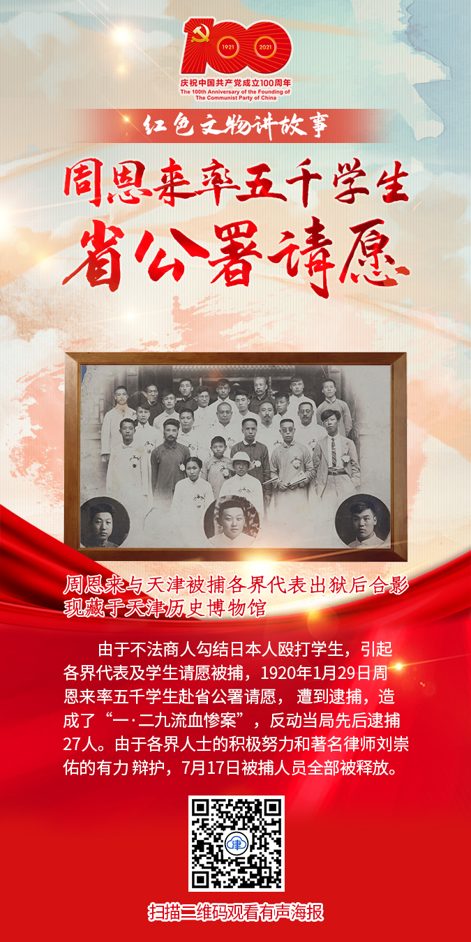天津北方网讯:革命文物承载党和人民英勇奋斗的光荣历史,记载中国革命的伟大历程和感人事迹,是党和国家的宝贵财富,是弘扬革命传统和革命文化、加强社会主义精神文明建设、激发爱国热情、振奋民族精神的生动教材。2021年是中国共产党建党100周年,为传承红色文化,弘扬红色精神,津云新媒体与市文化和旅游局(市文物局)共同推出“红色文物讲故事”百期有声海报。