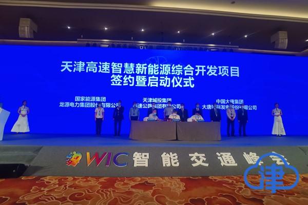 天津北方网讯:5月19日,天津高速智慧新能源项目在第五届世界智能大会智能交通峰会上正式签约并举行了项目启动仪式。本项目由天津高速集团发起,与龙源电力集团股份有限公司、大唐国际发电股份有限公司联合实施。