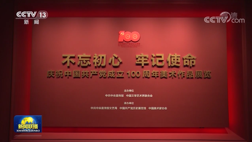 由中共中央宣传部、中国文联主办的“不忘初心 牢记使命——庆祝中国共产党成立100周年美术作品展览”6月27日在中国共产党历史展览馆开展。展览聚焦建党百年的重大历史事件、杰出历史人物和优秀共产党人,形象化地再现了中国共产党的光辉历程和不朽功勋,以艺术之美诠释了在党的领导下中华民族实现了从站起来、富起来到强起来的历史性飞跃,以时代画卷描绘了中国人民阔步新征程、奋进新时代,实现中华民族伟大复兴的光明前景。
