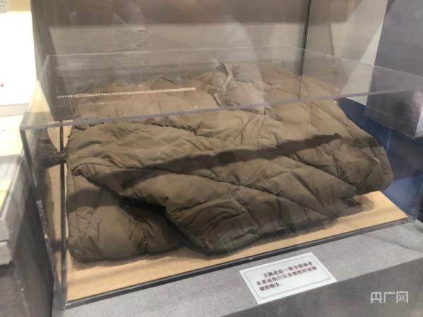 在整个展区第六单元处,有一件看起来很普通的棉衣,静静躺在展柜中,军绿色,还带着些汗渍,被整整齐齐地摆放着。但透过玻璃窗,再仔细看,却外露着白色的棉絮。这是明显经过激烈斗争时撕扯后留下的痕迹。