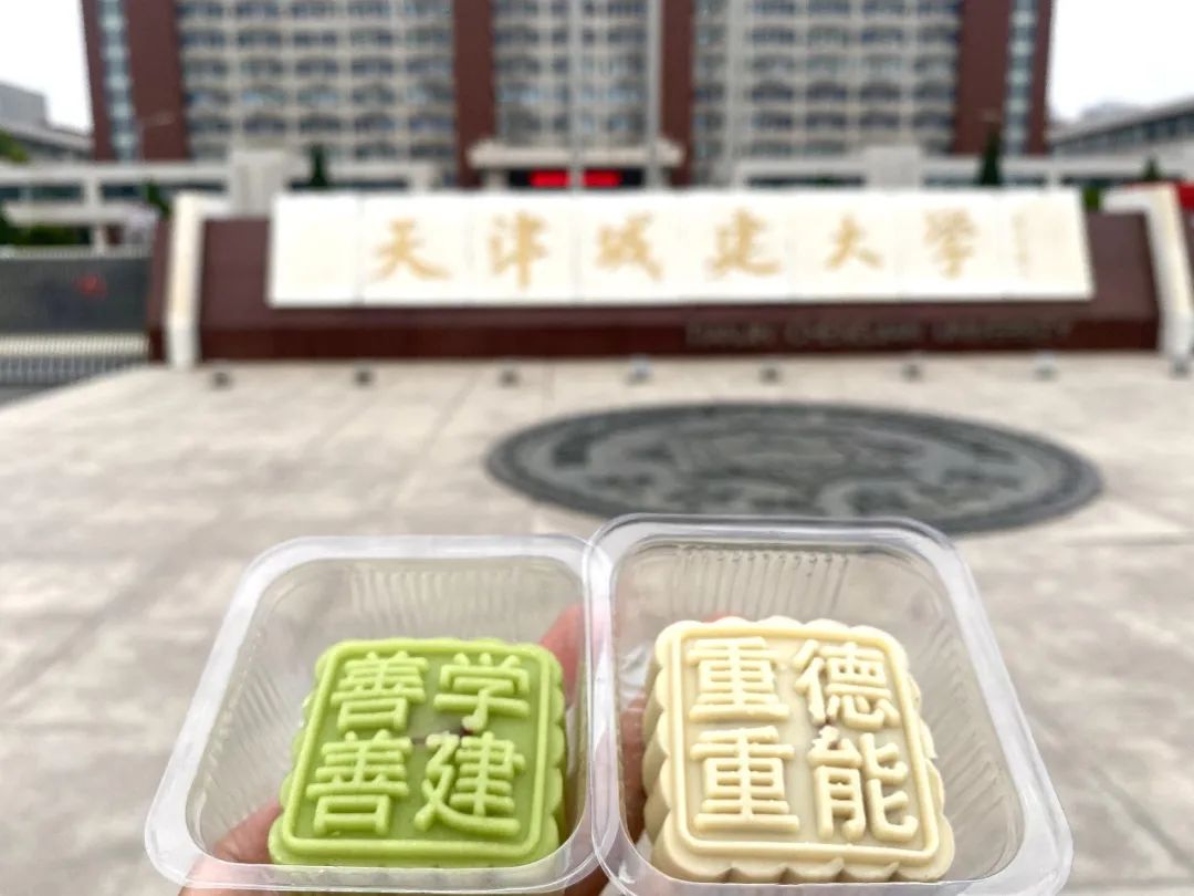 天津城建大学月饼如约而至!不论是带有校训的月饼,还是烙印着教学楼图案的月饼,都令人爱不释手。