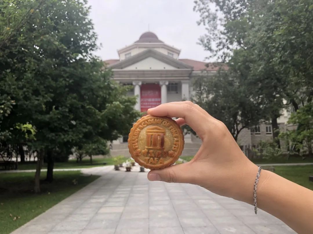 当月饼融入校园景色,竟然毫不违和!那么你会带着这枚独特的月饼,去哪里打卡留念呢?