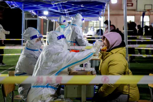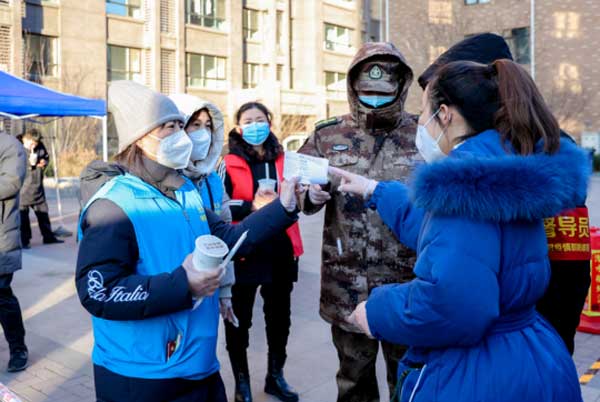 核酸检测的快速完成,离不开社区工作者与志愿者们的冲锋在前。“能为天津百姓守住防控一线,尽快让天津恢复从前的生活,我觉得很光荣!”天津市河北区宁园街检测点的社区工作者小李说。从清晨到夜幕降临,由于系统满载,工作人员不得不用手写的方式记录着待检人员的名单。夜晚,沪上阿姨带着温暖茶饮送到一线工作人员手中,感恩他们在寒潮中仍坚守在核酸监测采样点的专注,与天津人开朗的性格一同温暖了整个城市的夜晚。