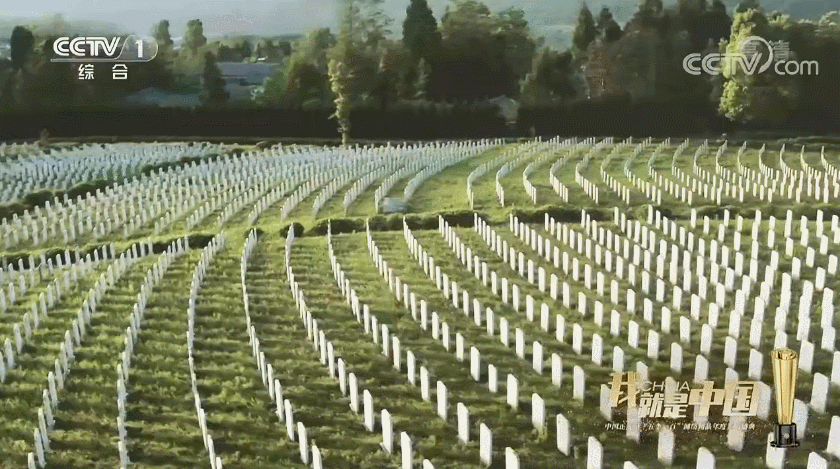 画面里,一排排白色的墓碑很是整齐,却又一眼望不到尽头,那些长眠于此的人们,有一个共同的名字——烈士英雄。