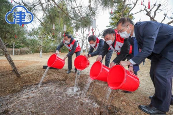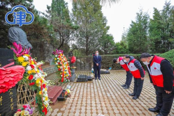 天津北方网讯:又是一年青草绿,梨花风起正清明。3月22日,2022年“生命的意义”——奉献者生命礼赞·红十字清明追思绿色代祭活动,在蓟州区元宝山庄生命纪念公园奉献碑前举行,这已是市红十字会连续第12年在此举行清明追思缅怀活动。